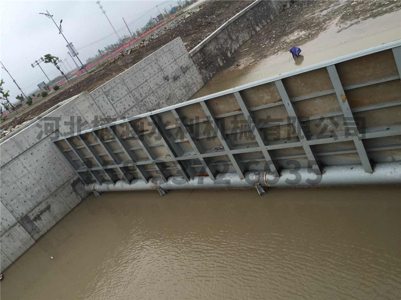 我廠生產(chǎn)的鋼壩是一種新型可調(diào)控溢流壩,它由土建結(jié)構(gòu)、帶固定軸的鋼性壩體、驅(qū)動(dòng)裝置設(shè)備等組成。這種建筑物適合于河道孔口較寬(10米~100米)而水位差比較小的工況(1~6米),由于它可以設(shè)計(jì)得比較寬,可以省去數(shù)孔閘墩,所以不僅結(jié)構(gòu)簡(jiǎn)單,可以節(jié)省不少土建投資,而且可以立壩蓄水,臥壩行洪排澇,還可以利用壩頂過水,形成人工瀑布的景觀效果。