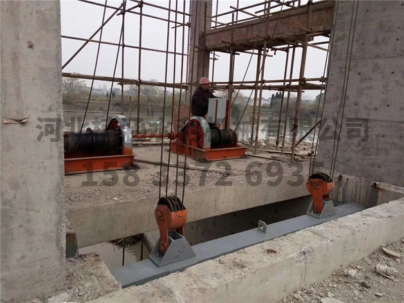 鋼閘門啟閉,中小型閘門用電動啟閉機通過傳動軸直聯(lián);大型閘門用鋼絲繩牽引,卷揚機驅(qū)動,由用戶選。