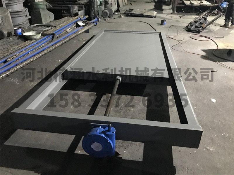 臺(tái),安裝方便。小規(guī)格的采用整體鑄造,較大規(guī)格采用組裝式。訂貨時(shí)詳細(xì)注明閘門尺寸、