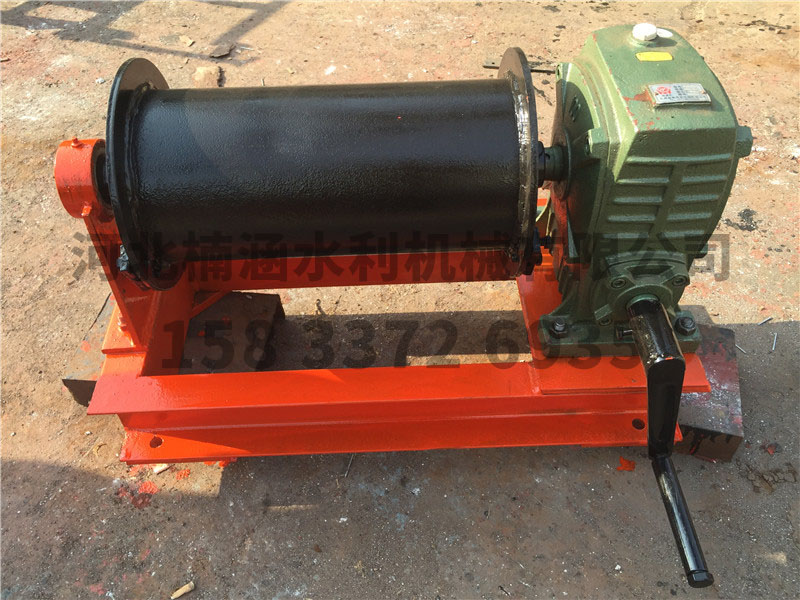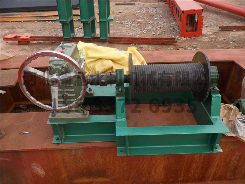 手動卷揚式啟閉機機(又叫手動絞車、手動卷揚機)是由人力或機械動力驅(qū)動卷筒、卷繞繩索來完成牽引工作的裝置??梢源怪碧嵘⑺交騼A斜拽引重物。卷揚機分為手動卷揚機和電動卷揚機兩種?,F(xiàn)在以電動卷揚機為主。電動卷揚機由電動機、聯(lián)軸節(jié)、制動器、齒輪箱和卷筒組成,共同安裝在機架上。對于起升高度和裝卸量大工作頻繁的情況,調(diào)速性能好,能令空鉤快速下降。對安裝就位或敏感的物料,能用較小速度。