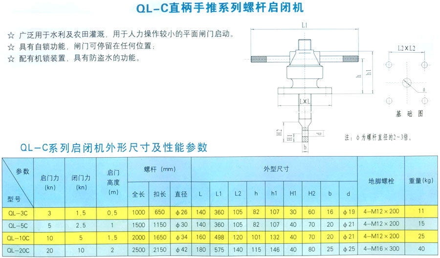 QL-C直柄手推系列螺桿啟閉機(jī)